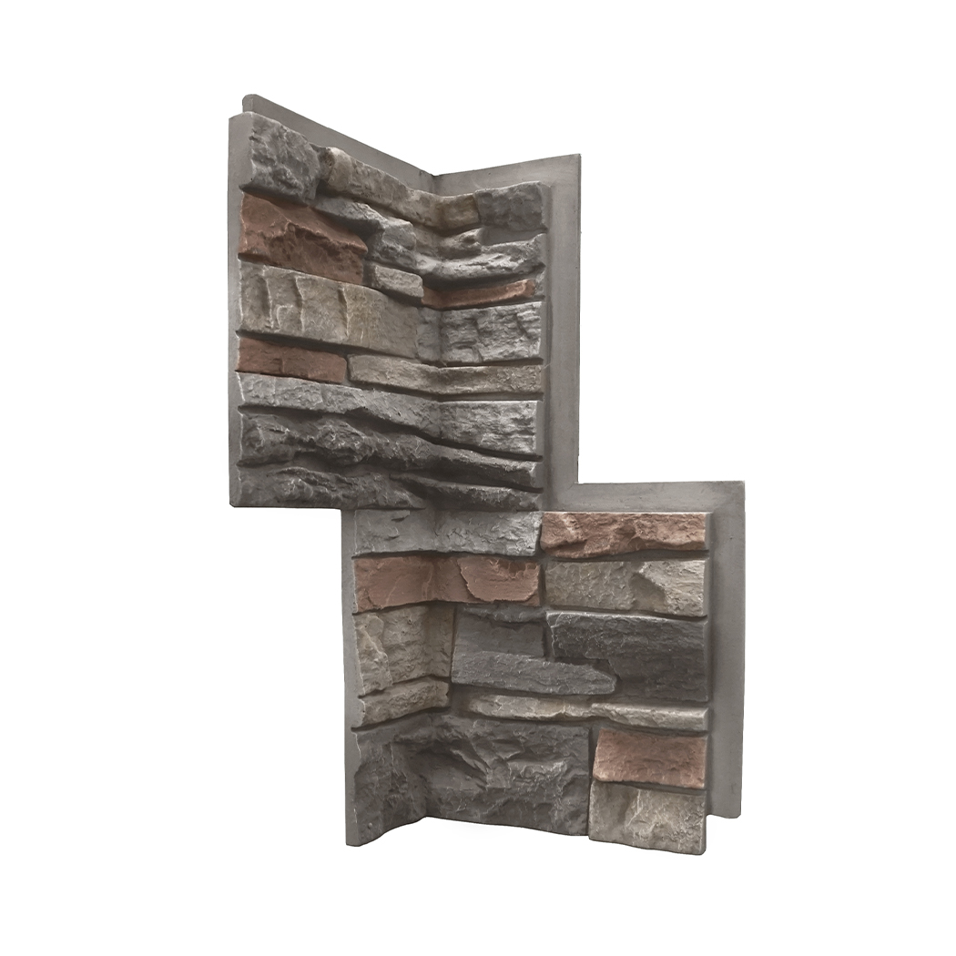 The 90° inside corner piece is unique to the GenStone system. This panel eliminates the need to miter panels when you need to transition through an inside corner. Like the outside corner panel, this piece also creates the necessary offset pattern throughout the install. The positive shiplap edge runs along the left side of the panel and the negative shiplap edge follows the right side. Each shiplap is designed to provide a tight connection to panels joined to its right and left.